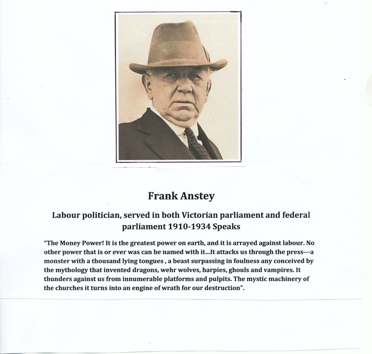 On Sept. 30 1909, in Federal Parliament, O’Malley emphasised: “The private banking system of the Commonwealth is only a legalised monopoly for the gathering of wealth from the many, and its concentration in the hands of the privileged few... We are legislating for the countless multitudes of future generations. We are in favour of protecting, not only the manufacturer, but also the man who works for him. We wish to protect the oppressed and downtrodden of the earth.”