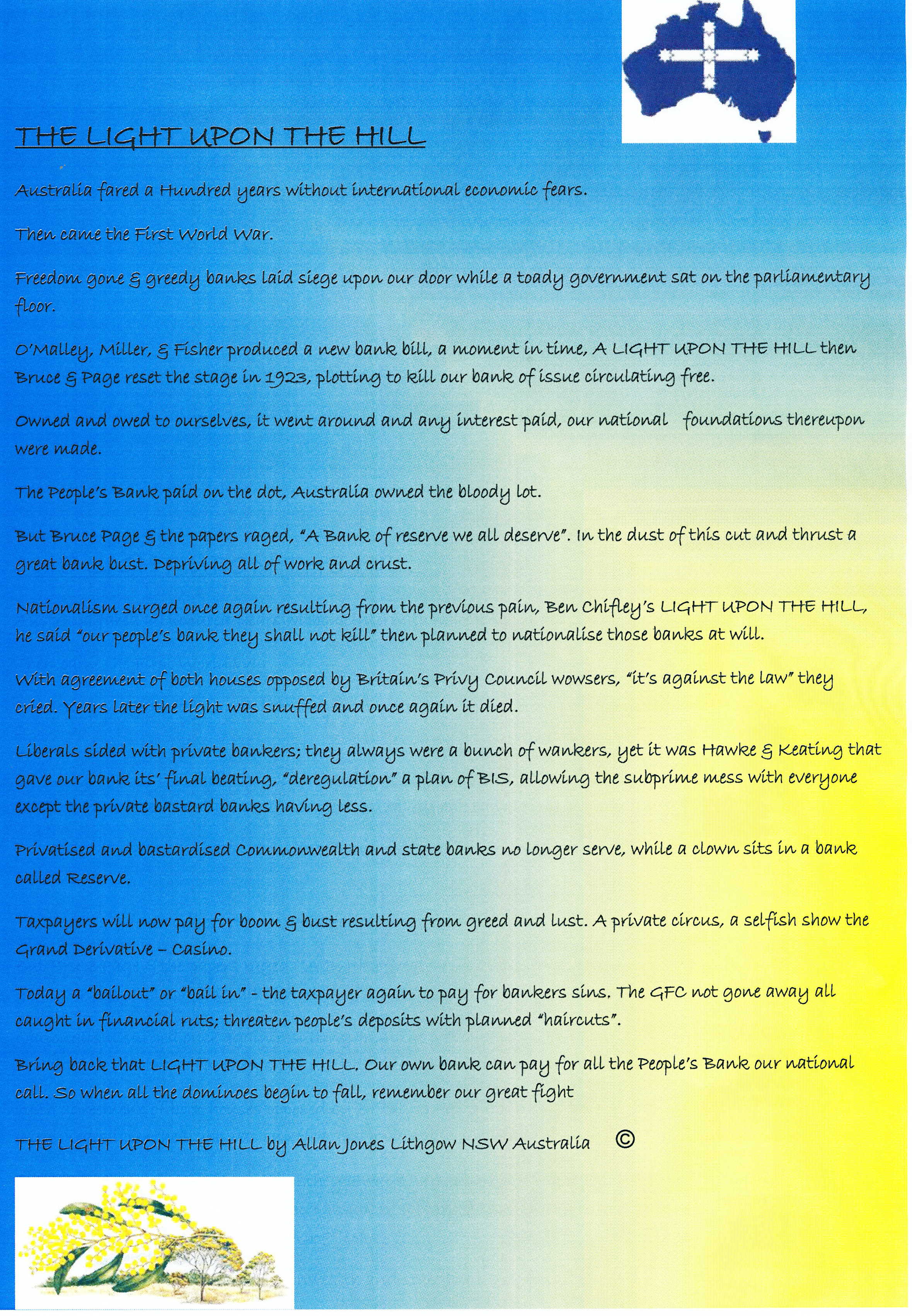 This information produced by; AllanR Jones, economic policy development, Australia First Inc. and Peoplewealth public bank initiative.